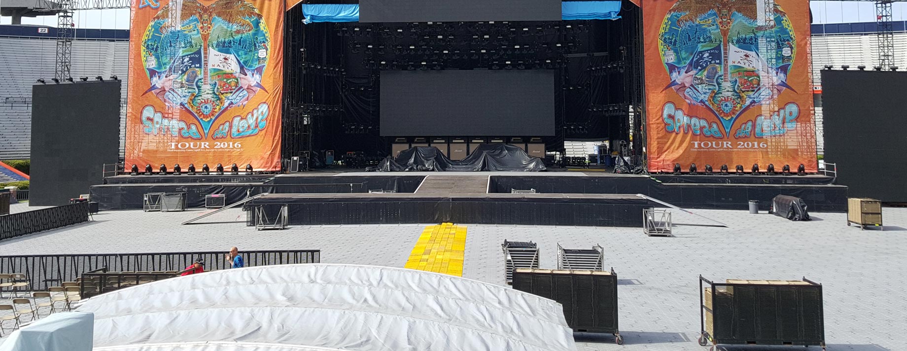 Quality Event Flooring Systems offers a comprehensive line of pedestrian traffic protection products that provide a safe, uniform and stable surface to ensure a positive experience for fans and concert attendees. We provide temporary walkways and flooring rentals to ensure your grass, turf, field or other surfaces are protected from pedestrian foot traffic. In addition, pedestrians are protected from mud, dirt and water.